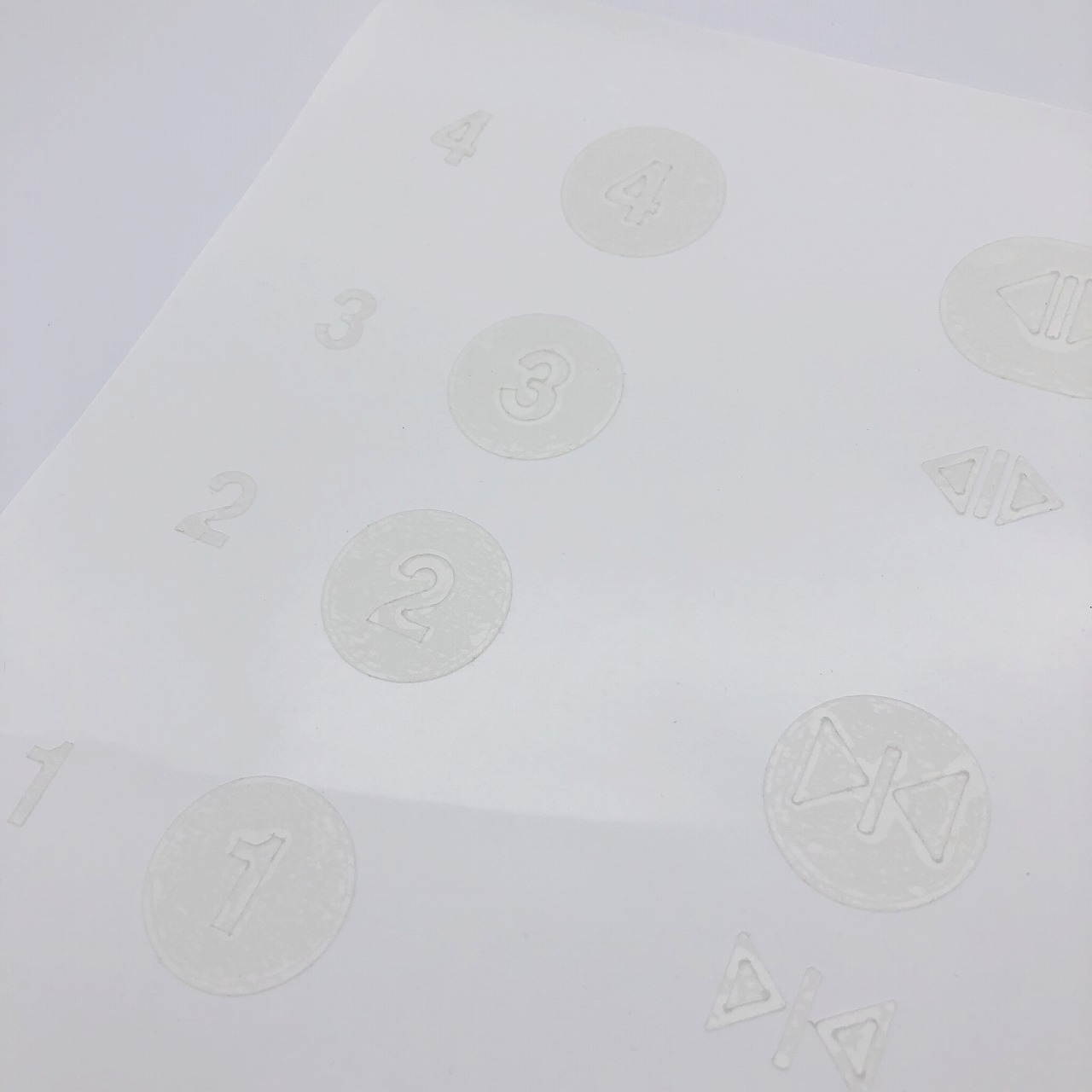 エレベーターのボタンに貼り付けるフィルムを製作致します。